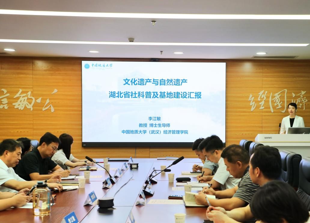 杨昌锐对调研组的到来表示欢迎,全面介绍了经管学院的发展情况,及对基地的支持事项。郭锐对省社科联对一直以来的关心指导和鼓励支持表示感谢,学校将大力支持社科普及基地建设,从特色优势方面进一步打造具有全国影响力的品牌。李江敏汇报了文化遗产与自然遗产湖北省社科普及基地的基本情况、建设工作及未来计划,展示了基地科普成果,表达2025年将继续建强科普专家队伍,打造更多精品资源,更广范围开展科普宣讲,进一步提升省级社科普及基地影响力。