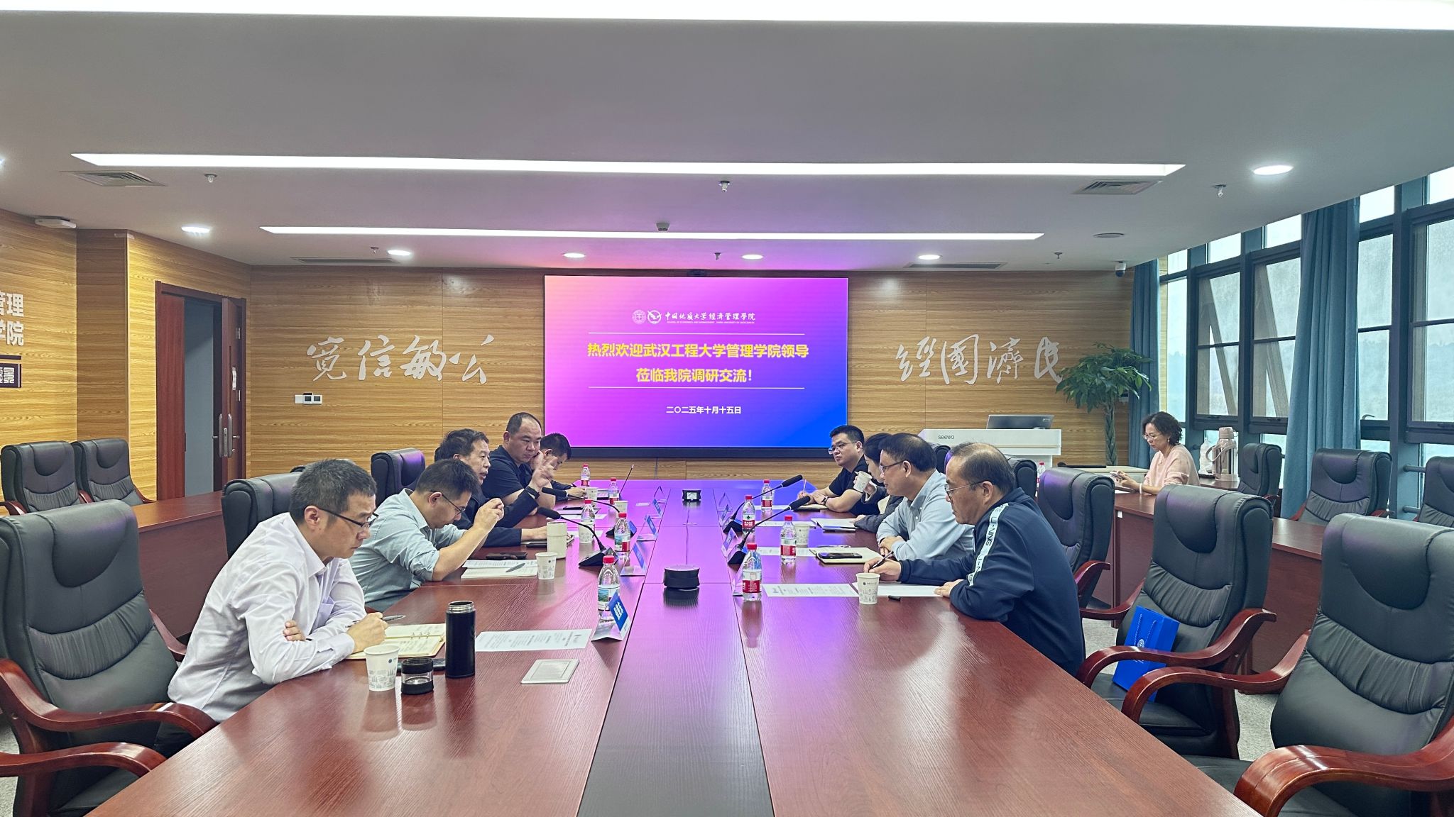 杨昌锐书记介绍了我院在党建引领、实验室建设及人才培养模式创新方面的探索与成效。於世为院长重点分享了学院近年来在年终绩效分配改革方面的探索与成效,详细介绍了学院如何通过科学合理的绩效评价体系,激发教师教学科研积极性。闫华飞院长介绍了武汉工程大学管理学院在绩效改革、青年教师激励及案例教学方面的经验做法。双方还就本科人才培养方案优化、专业硕士培养管理、案例开发激励等议题进行了深入交流。