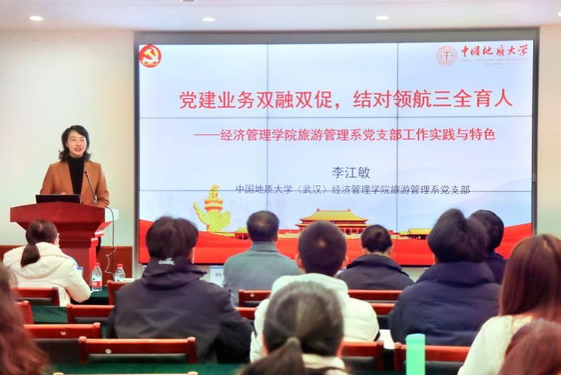 杨昌锐书记围绕《高校党建“双创”工作思考和探索》,介绍了学院党建双创工作经验,并从党组织领导和运行机制力争科学、规范、高效,政治把关力争严格、细致、全面,思想政治工作力争面对面、心贴心、实打实,基层组织制度执行力争规范、严格、精细以及推动事业发展有位、有为、有力等五方面分享必赢线路检测3003no1党委“五融”工作法以及党建工作机制体制创新经验。李江敏书记基于《党建与业务双融双促,结对领航三全育人》,分享了旅游管理系党支部工作实践与特色,把祖国大好河山融入党课,以场景思政培育学生专业素养,用红色教育资源筑牢青年理想信念,实现“党建+教学科研+结对领航”,联动师生党团聚合力。专题报告获得了与会人员的一致好评,表示对学院和支部党建“双创”有了更深的认识和收获。